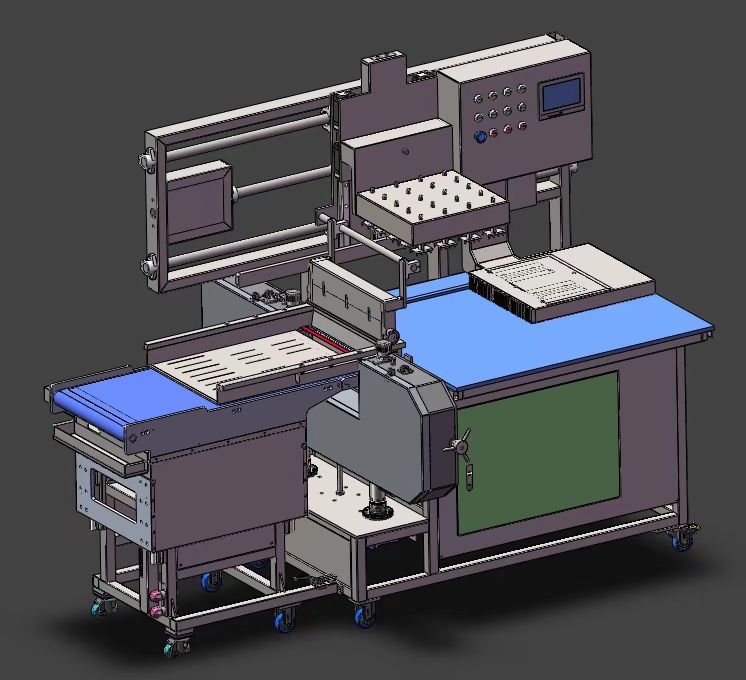 橫向平切式凍肉(骨)開片機,是我公司按照市場需求精心研發(fā)的一款骨肉類深加工切割設(shè)備。本設(shè)備已榮獲國家發(fā)明專利(專利號:202310105353)。本設(shè)備采用鋸切的方式和橫向結(jié)構(gòu),可以將﹣20℃的凍肉、骨等食材鋸切成為均勻平直且最大橫截面的片,可以極大提高后續(xù)切塊、切絲、切片等工序的成品率和成型率。本設(shè)備采用氣電組合的動力結(jié)構(gòu),整機設(shè)備由主機和氣動升降夾料輸送帶組成,放入食材原料后無需人工干預(yù),氣動壓料,自動往復(fù)鋸切傳輸,極大提高了工作效率,保證了工作人員的安全性。開片厚度可以根據(jù)用戶需求數(shù)控調(diào)節(jié),方便快捷。整機采用SUS304不銹鋼材質(zhì),工作完成后可用高壓水槍直接沖洗和消毒處理。本設(shè)備適合用于超低溫凍肉、骨類切割,例如:冷凍大塊部位牛肉、大塊部位豬肉、調(diào)理組合禽類、脊骨、扇子骨、冷凍鱈魚等硬質(zhì)食材的橫向開片。外觀美觀大氣,是食品加工企業(yè)及食品深加工車間的優(yōu)秀選擇!